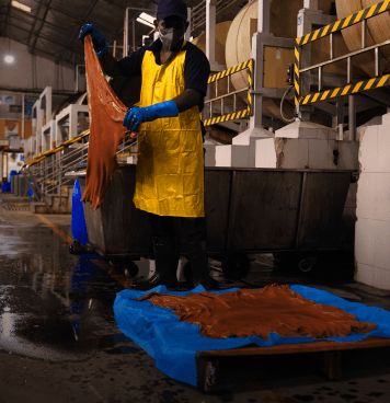 Natural vegetables tannins are used to transform raw hide into high-quality leather.